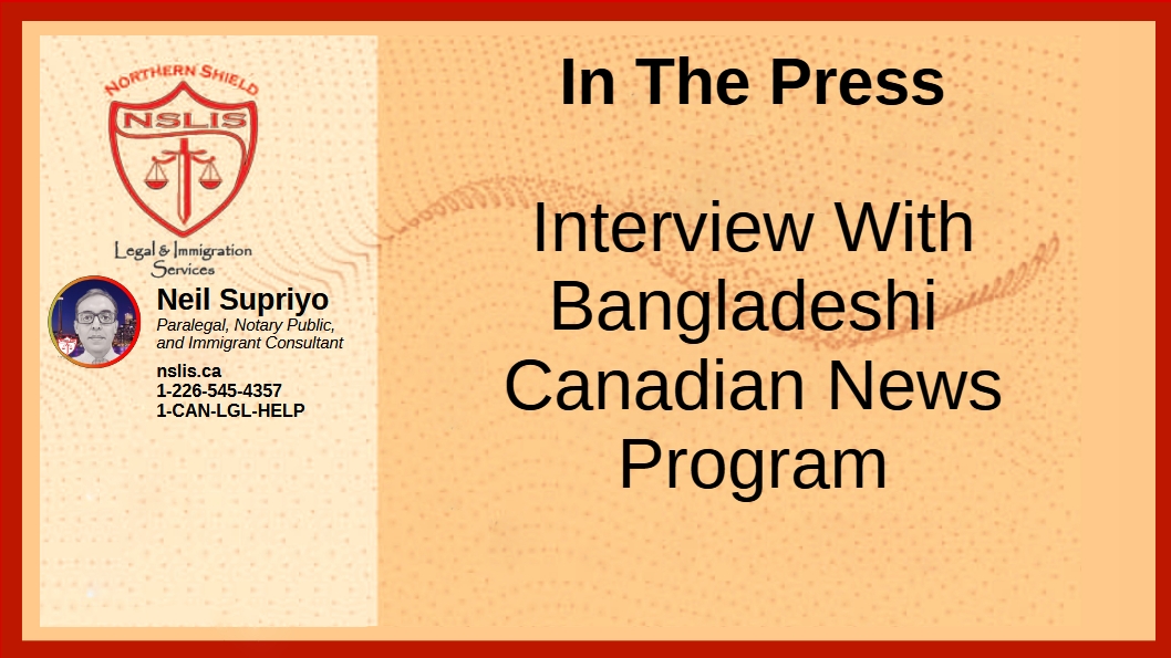 This is an interview Neil did with a local Bangladesh-Canadian New Program.